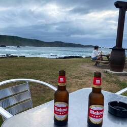 Platz direkt am Meer mit zwei Strandbars. 10 Euro die Nacht.