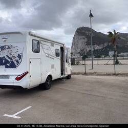 Es war eine sehr ruhige Nacht, kein Flugverkehr in Gibraltar. Wir schlafen sehr lange, Filterkaffee und ab zu Fuß 10 Uhr zur spanisch-englischen Grenze, es ist sehr windig. Der Himmel, naja leiderLeia mais
