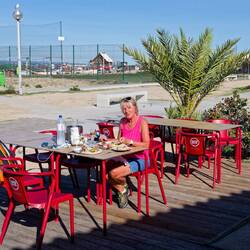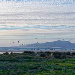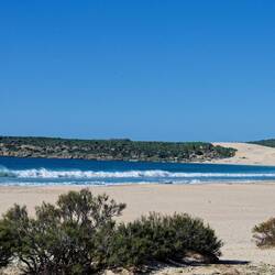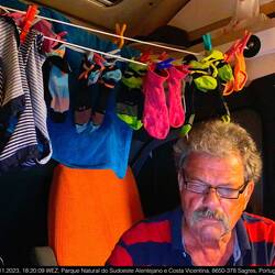 Der Himmel reist auf, gerade rechtzeitig für unseren Wasch-und Putztag. Bettwäsche, Handtücher – nun alles wieder frisch und das WoMo innen gesäubert und vom feinen Sand befreit. Ich putze dasLeia mais