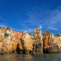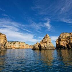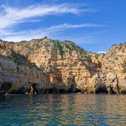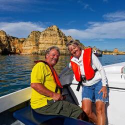 Kurz nach 9 Uhr starten wir in Richtung Marina Albufeira. Wir finden sehr schnell einen Parkplatz und nehmen spontan den ersten Anbieter für Bootstouren, Algarve & Delphine. Pünktlich 10 Uhr startenLeia mais