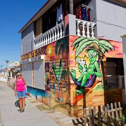 Nachts ging ein heftiger Sturm und dann begann es auch noch zu regnen. Am Morgen scheint aber die Sonne am blauen Himmel. Wir machen unsere üblichen Entleerungen, löhnen 24 € für 2 Nächte undLeia mais