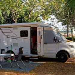 Wir stehen gegen 8:30 Uhr auf, das WoMo ist angenehm warm und über uns haben die Krähen ihre Nester und machen höllischen Krach. Es ist der 1. Advent und Biggi hat kleine Engel aufgehangen. NachBaca lagi