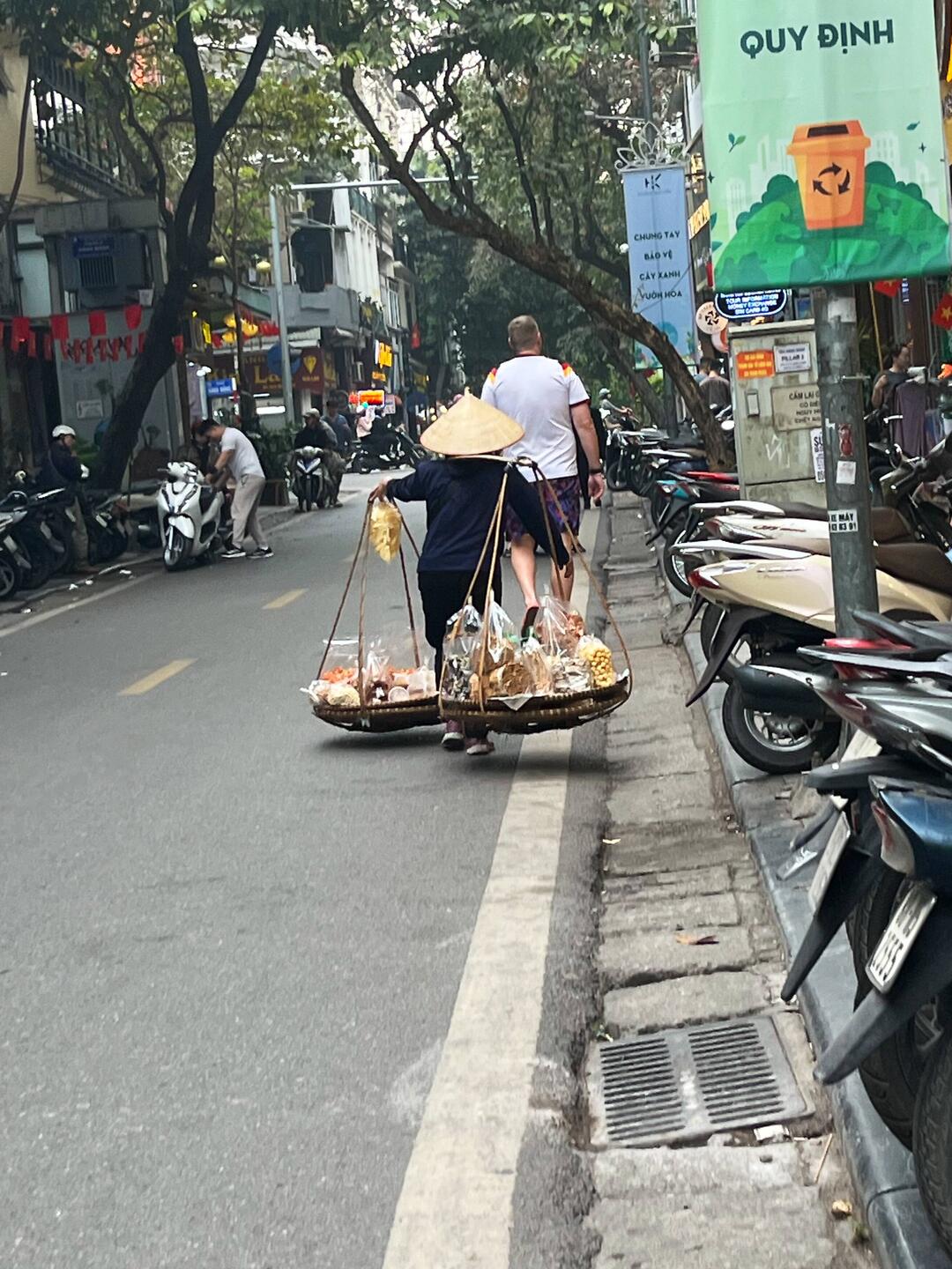 Après un petit déjeuner salé à l’hôtel, nous nous sommes baladés dans le vieux quartier (Hang Gai, Hang Bac, Hang Vai, Hang Chai…).