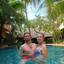 C’était une journée chill aujourd’hui, baignade dans la piscine de l’hôtel, puis on a mangé notre 1er « Pho ».