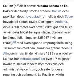 En av världens högst belägna huvudstäder på 3600 m. Vi fick ta minibussar in till centrum, pga att våra stora rosa bussar inte får köra in dit.