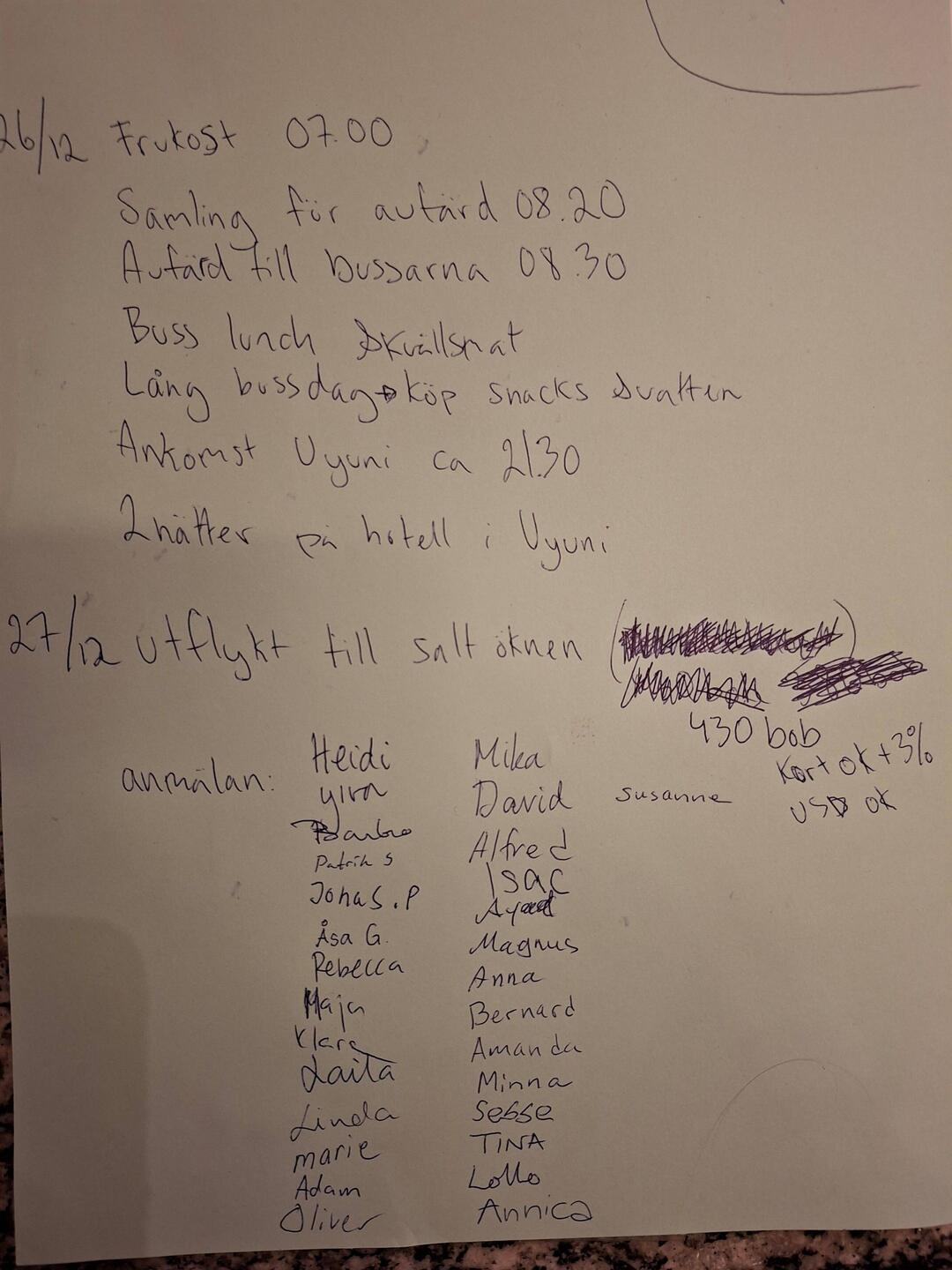 Julafton firas genom att ta lokalbuss till Moon Valley och Teleferico därifrån. Lokalbussarna är minibussar som kommer när de kommer. Gemensam julmiddag på hotell Sagarnaga blev det och Lollo ochLæs mere