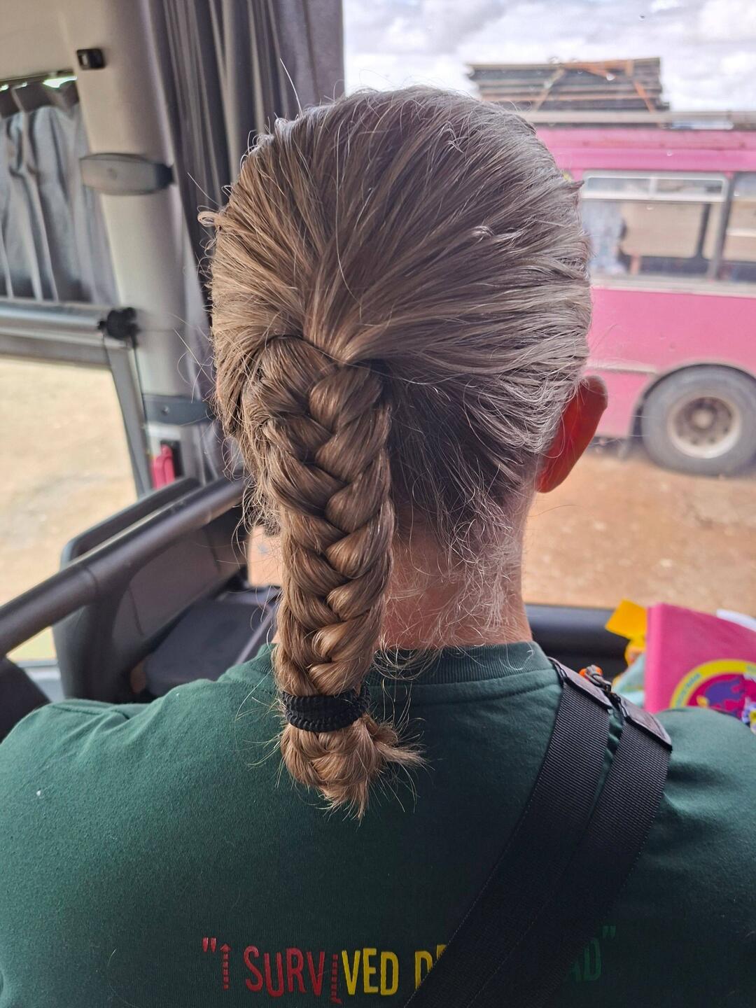 ...att komma över gränsen till Argentina. I väntan på det fick jag håret flätat, för första gången på minst 35 år, se bild. Det gick inte bra. Det är bara bussarna som är problemet,Læs mere