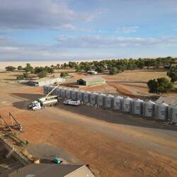 Bei der CBH ähnlich unserer Genossenschaft, wird das Getreide mit LKWs angeliefert und von dort aus nach und nach mit Hilfe von Zügen in den Hafen transportiert. Währenddessen wird auf der Farm dasLæs mere
