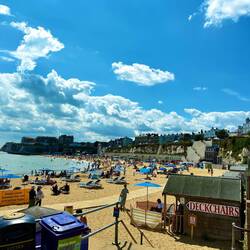 Kurz nach Ramsgate kam dann in Broadstairs tatsächlich noch richtig die Sonne raus und es wurde richtig warm. 🤩Das Meer war ruhig und strahlte in der Sonne richtig blau, man könnte fast meinenOkumaya devam et
