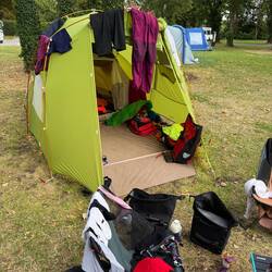 Nach 4 Stunden und insgesamt 54 km, sind wir in Sandwich am Campingplatz angekommen. Ja, der Ort heißt wirklich Sandwich. Da das Wetter noch gut war, haben wir schnell unser Zelt aufgebaut und allesOkumaya devam et