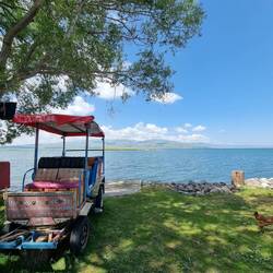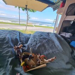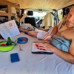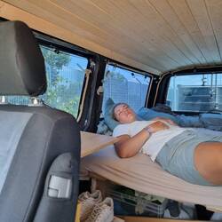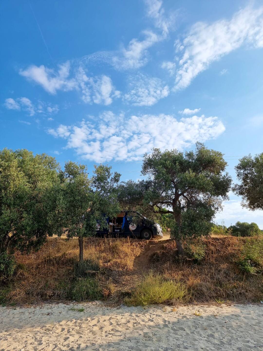 Unsere Camper dürfen wir an einer Strandbar abstellen und dort auch Dusche und WCRead more