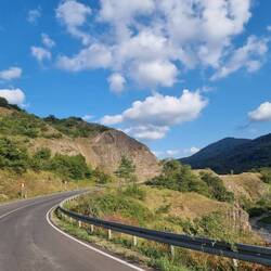 Nationalstraße in Albanien. Toller Ausblick. gewöhnungsbedürftiges Essen