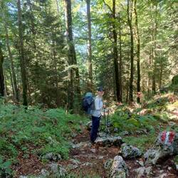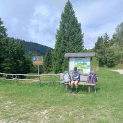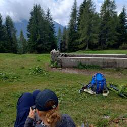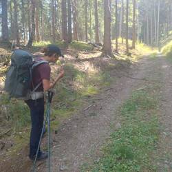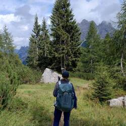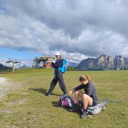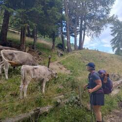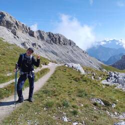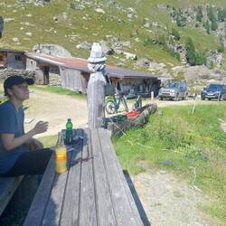 Kurz nach der Tissihütte Verabschiedung von Franz, der uns heute verlässt. Dann steigen wir zum Rifugio Mario Vazoller ab und es gibt erstmal ne Kaffeepause. Danach geht es einen Forstweg runter undLæs mere