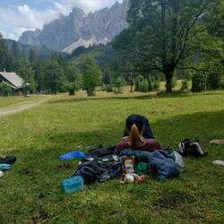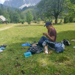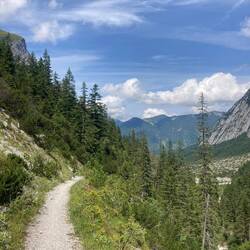 Heute das erste Mal mit dem Bus abgekürzt. 10 km an der Straße entlang eingespart und dafür morgens entspannt in den Tag gestartet. Der Aufstieg zum Karwendelhaus ist entspannt. Das KarwendelhausLæs mere