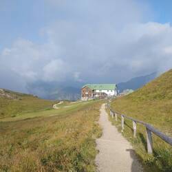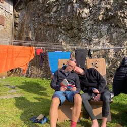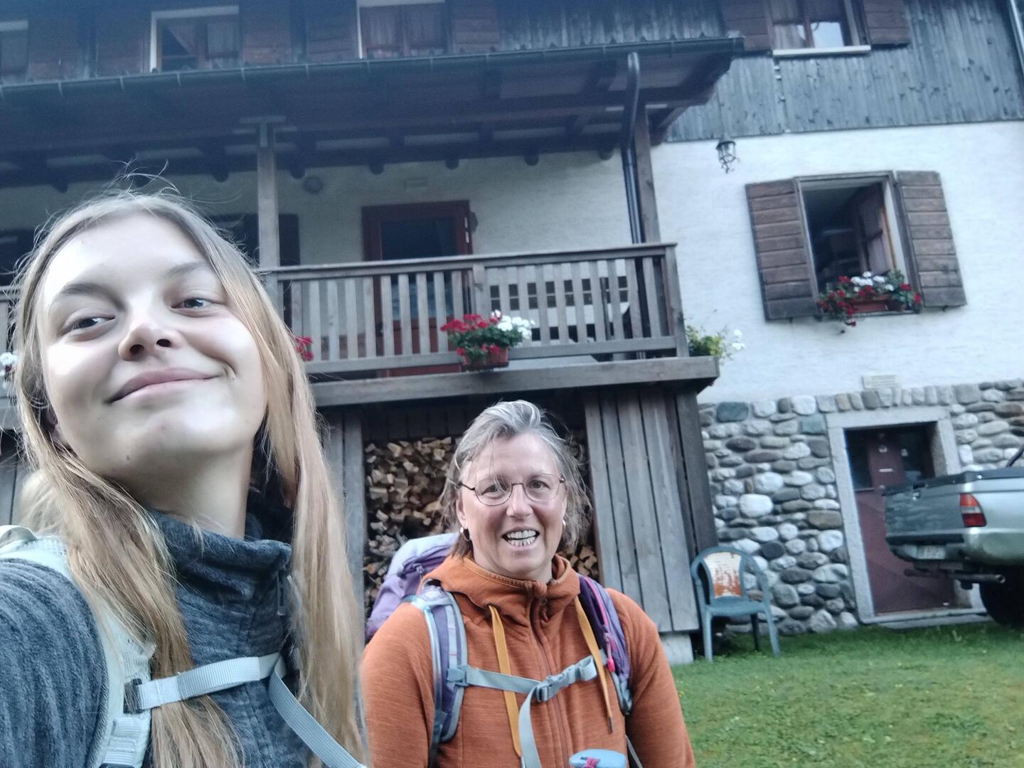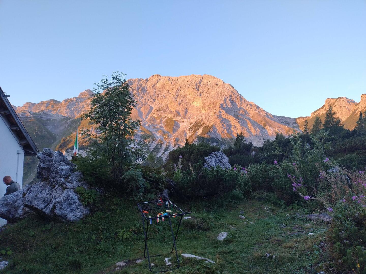 Wir sitzen gerade vor der wunderschönen Hütte, die eigentliche Hütte ist klein und alt, daneben ein Anbau zum Übernachten. Wie auf allen italienischen Hütten wird es zum Abendessen 2 Gänge, z.b.Læs mere