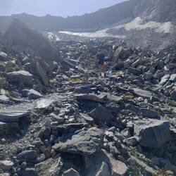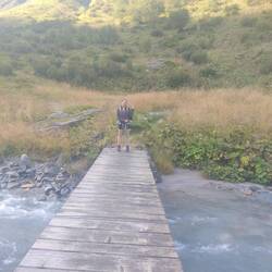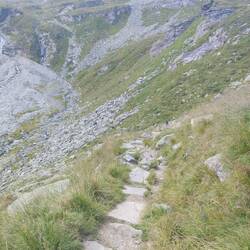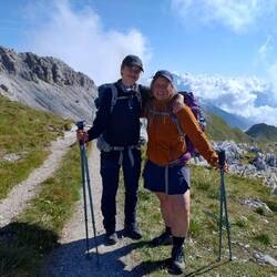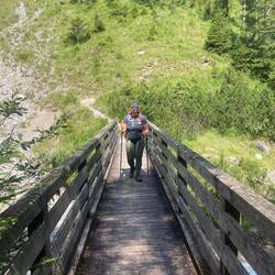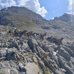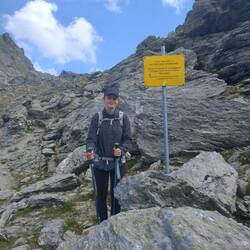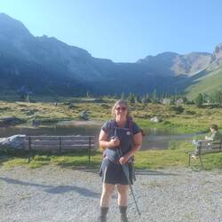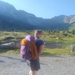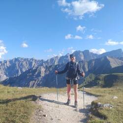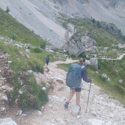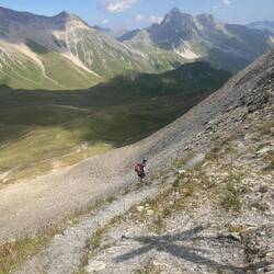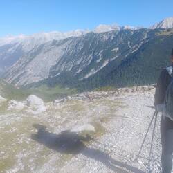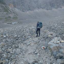 Aufstieg zum Lafatscher Joch. Erst über Geröll (kann ich nicht mehr sehen), dann ein sehr schöner Weg. Danach ein langer aber entspannter Abstieg. Der Muskelkater von gestern schmerzt aber noch.Læs mere