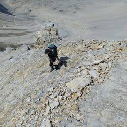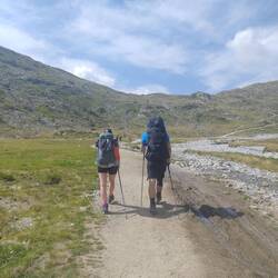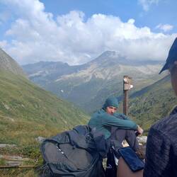 22 km aber ziemlich entspannte Wege, so dass wir gut voran kommen. Franz ist heute den ersten Tag dabei und leidet ein bisschen unter dem Pensum. Aber abgesehen vom letzten Aufstieg zur PeitlerscharteLæs mere