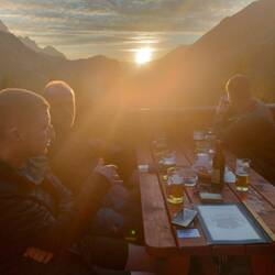 Heute haben wir die Friesenbergscharte bezwungen! Anstrengend, aber gut machbar. Gerade sitzen wir in der Dominikushütte am Stausee und trinken alkoholfreies 🍺.