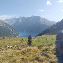 Eine sehr entspannte Tour - morgens ausschlafen bis um 7.30 Uhr, dann Frühstück und noch ein kurzes Bad im Stausee. Anschließender Aufstieg zusammen mit Venediggeher Felix zum Pfitscher Joch HausLæs mere