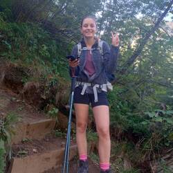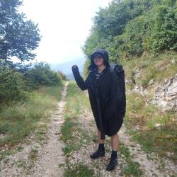 Unser erster Tag in den Bergen. Trotz dauerhaften Regen - wir sind Happy! Es ging lange eine Straße bergauf und zum Schluss gab es noch einen deftigen Aufstieg der quasi eine Schlammschlacht war.Læs mere