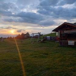 Erster Tag im Sonnenschein, es ist toll. Und auch der Weg macht Spaß, auch wenn die Höhenmeter es in sich haben. Pause am Dorfkonsum in Jachenau. Mal wieder sind wir die letzten die an der HütteLæs mere
