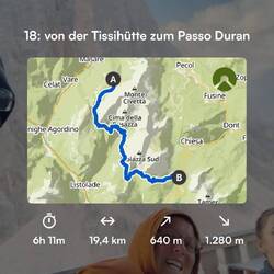 Das war heute eine harte Tour! Der Abstieg vom Rifugio Bianchet war entspannt und dann gab es erstmal Kaffee und Croissants in La Muda. Da wir nicht den Klettersteig laufen, verlassen wir denLæs mere