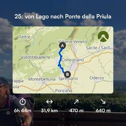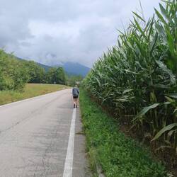 Heute ging es an der Straße entlang nach Belluno, da können wir uns schon mal dran gewöhnen. Die Alpen liegen hinter uns. Nach 2 Stunden gab es Kaffee in Belluno, später auch noch Pizza. Und dannLæs mere