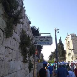 While traveling to The Lions' Gate we passed outdoor food vendors and ARF (Arab Fried Chicken). The Lions' Gate or St Stephen’s Gate is an Old City of Jerusalem Wall entrance. In Jesus' time, theLes mer
