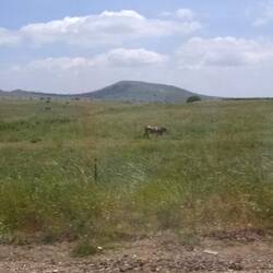 Mt. Bental, located in the middle of the Golan Heights mountain range, is a 3,842-foot high inactive volcano. Bental means cinder stone. From Mt. Bental, the snow-capped Mt. Hermon can be seen. Mt Hermon's summit straddles the border between Syria and Lebanon. Partial slopes of Mt. Hermon are administered by Israel. While visiting Mt. Bental it was advised to keep to established paths in the area; Old Syrian minefields remain uncleared just off of these paths.