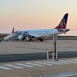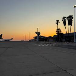 Um 5 Uhr sind wir bei Vollmond zum Flughafen aufgebrochen und um 7 ging das Flugzeug nach Cape Town. Sogar ein Frühstück- Snack gab es auf dem 2-Stundenflug.