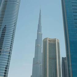 Mit dem Lift, in gut 1 Minute, hinauf ins 125. Stockwerk des Burj Khalifa, mit einem atemberaubenden Ausblick.