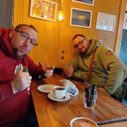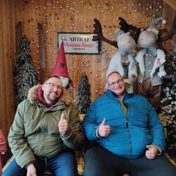 Sitzen im nördlichsten Café und essen Zimtschnecken, waren im Weihnachtshaus und haben uns bei Intersport Spikes gekauft, läuft sich auch viel besser damit.