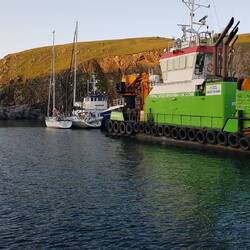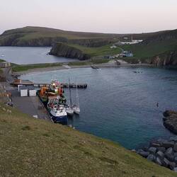 The North harbour is small and already had a work boat and one sailing boat just arrived from Lerwick, Chris and Stephen who offered us a drm as we arrived. Great company and a good contact on our next visit to Lerwick.