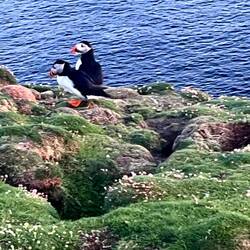 In the evening after tea we made a flask and went and sat in the Puffin roost area till dark surrounded by bunches of the cutest birds ever. They land and socialise before ducking into burrows, some their own work, others carefully constructed by a rabbit population, with which they appear to happily cohabit.Read more