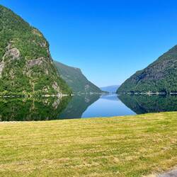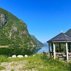This was a very pretty bay and so quiet. After a couple of cold beers took a stroll to the head of the bay. To our surprise there was a tidal inlet leading to another picture postcard fjord. All with jumping fish. All to good to be true. Norway seems to have world class beautiful spots hidden round every corner.Read more