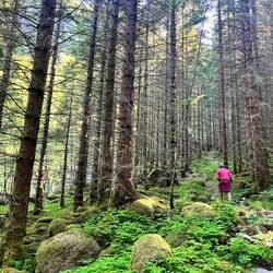 Not an early start. But untied from our 3 point anchorage. Stowed the ropes and headed down the giant fjord just to see how big it is and wether we fancied going to the end. After a full day of sunny, motoring, motor sailing, beating. Drifting. What appeared to be no progress had been made on this giant piece of nature. Completely at random we went to the nearest inlet. Again with no research and looked for somewhere to anchor. As it happened there was a single dock in the middle of the settlement with tyres etc. It looked perfect and Nick glided the boat boat in. Ready for everyone to take a well earns walk. In normal fashion, Rob and Claire set a punishing pace in the afternoon heat. Actually it might have been evening or even night. Its getting difficult to tell. A moderate view was had but with too m any trees. Back down the hilll for a swim to cool off.