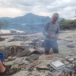 We anchored in a little Mitch a mile opposite town, amongst the rocks and the Island. One local called by to see if we had run aground. The day was scotching and some swims to shore were had by the girls. Pier pressure meant it was my turn to and I followed Claire to the beach where we planned a small fire and to cook tea. No point getting in nicks way when he has a plan and smoking Prawns in Steiner wood dust was todays plan. Cold beers, wine, beach fire and smoked prawns in the sun, what could be a better way to say bye and thanks to Nick and Spoons.Read more