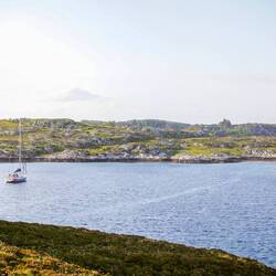 With a sailing distance of 27 miles to cover. But unfortunately as always it was going to be up wind. We hadn’t sailed much for a while, due to light wind etc. So we thought we ought to give it a go and be proper sailers. We tacked nearly 43 miles mostly through rocky channels. We even saw some swell out in the open ocean. Mostly 10 to 12 knots of breeze in clear conditions,all in all a good sail.