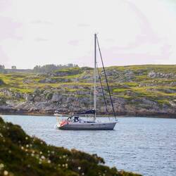 As we entered the rocky passage between flatoya and litldola we saw a baby sea eagle up on one of the mini islands. A good start, as we snuck up the passage of the this low lying rocky island we saw an adult sea eagle over our chosen anchorage. Still no Otters for Claire. The Anchor crabbed on a rock rather than burying. Fingers crossed. We lowered the dinghy in and went a shore in the evening light to see what there was on this un inhabited island. First wee got a display from the hooded crows on how to see off 2 sea eagles. Then a short walk through the enchanted forest, a very quiet place. As we found our way out onto the seaward side of the island it was obvious that these out of the way island collect all of the sea floats under and jetson it was very sad to see just how much rubbish collects in these isolated places. The wild life is living in amongst it all, including the elusive Otter.Read more