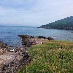 We launched the dinghy and set off south to see if there was any place we could get ashore. Again tricky but a little sport in atlantic bay wher we could scrabble up a cliff towards the wreck of an abandoned refuge. On route we hade to fight our way through deep grass and ferns. Felt like an adventure in proper isolation. After an hour or so nosing round the building and various out buildings we decided to head back to the dinghy by a slightly different route. It wasn’t any easier, hidden fences and trip hazards. This was the kind of little spots I was hoping to find and show Steve a Masher.