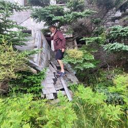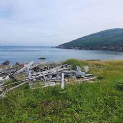 After a wander round the basics some photos of the island many years ago, a small light house tat had been moved to shore and some bits and bobs from the light house keeper from 100 years ago, we struck up a conversation with the ladies and told them we had been there the day before. They were a bit surprised and told us that we were not allowed on the island OOps!! We confessed and they were very interested in very things condition. Very friendly. They then began to tell us the story off the island. In essence ever since the people had used the sea in this area boats and ships would bump into the island in the fog and strong currents(before modern navigation aids.). Over the years more and more people ended up shopped wrecked on the island sometimes hundreds at a time. The problem was with thick fog and the on set of winter there was often no way to recover these people. The sea would freeze strung with icebergs and any way of getting to the island was impossible until spring. People from the main land would often see fires burning on the island after a wreckbut as time went on these fires would begin to cease as the people slowly died of starvation. Eventually a refuge was built on the island to give ant ship wrecked people a better chance of survival. It is now in ruins and was the building we scrabbled about in . There are 3000 graves on this small island about the size of Lundy and most of the people were buried under the ferns we fought our way through.