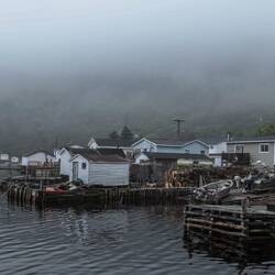 After an instrument guided trip to the entrance of grey river (lucky no one else here) it was pretty intimidating to see the dark cliff sharpen out of the fog and see the atlantic swell break on either side of this tight spot. We were within 100 metres before the whole view of the entrance appeared. It reminded me of kayaking to Lundy with Rupes and navigating by seagull noise in the pea souper we were in. As always once in, all was good. The small town of Jervis Cove has 90 residents and no road in or out. 2 fishing boats with 2 men on each. I was told in winter it is possible to get to the road over the mountains by snowmobile in an emergency. The harbour freezes in winter too so these people are pretty used to isolation. There is a school which had 12 children but as of today only 9 as 3 graduated. 2 teacher and a secretary. Pretty good ratio I recon.