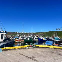 So style storm that we hid from in Indian harbour has passed trough and we make an attempt to get out of Pancenti bay. After a bit of study of the chart we decide to squeeze between Merasheen Island and red island on the wind angle we have. Lucky we did as the whales were feeding in the big swell to the south of red Island. Top whale spotting. And also some some white sided Atlantic dolphins feeding on a shoal nearby. Lucky for us the wind filled in tour o a solid 25kt and we covered the 42 NM to st. Brides in short order. I was all planned and pilotage done for entry into this very tight and not often visited fishing harbour. There was a significant left over swell running in behind us and the entry is pretty shallow. It would be pretty tricky to turn round once committed to this strange entrance. A couple of big swells rolled us forward and the depth was looking super shallow. It all felt very wrong after a minor panick I adjusted coarse and decide to go the wrong side of the buoys and got squirted forward to wards the harbour entrance turn. After a few more squirts forward we are in. very stressful. We get tied up on the fisherman’s wharf. The sun is out and the stress is gone. Cars keep driving to the wharf to see the idiots who have come in on a yacht. One eventually talks with us a tells me that all the navigation buoys had been thrown about in a storm last winter and we very lucky we had gone the wrong side it them as there are “suckers below that area, sinkers are shallow large rocks. Lucky escape i recon. We get a tip for a good place to get food, he said get the cod and chips I sold them the cod. He was right it was good and all the locals were there and a few wanted to hear our story. They were all fisherman and told us the best and safest route out of the harbour .