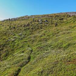 Our exit through St John’s narrows was in total contrast to our entry. Port control said head out when you want nobody around. The sky was blue and the sea was flat. We were not mor than 100 metres through the narrows before the first whale came to visit. And there were blows everywhere. Sails up nice little westerly and we are doing 7.5kts. Dolphins whales sea birds blue sky. Could not have been better. Our intention was to head round to Newfoundland yacht club. But as we were rounding the headland, to head south we spotted something weird on the horizon it looked like a giant sugar lump. Iceberg??? Check the radar something but not determinable. After some faffing about we decide to go and find out. We set coarse for the the sugar cube . Radar suggested 7 miles. Definitely worth investigating on this beutiful sunny day. The closer we get the smaller the sugar lump gets, weird. Turns out it was a well known phenomenon that lifts things above the visible horizon. We are still exited and plough on. In the end we did 12 miles of whale and bird spotting before we got there. It was worth every minute a berg about 70 metres long by 40 metres and about 25 high surrounded by whales breaching and calling out loud. We spend 2 hour gently circling the bird od engine off glauiding withe the whales. Absolutely magical. As sunset approaches we choose a spot for the night on the chart and head to Bay de Verde. Via Baccelieu Island to see on final wildlife show, the giant gannet and puffin colonies. Unbelievable noise and activity, so much that we decide to do all the same again tommorow. We bump into Aaron our American frien in the harbour and spend the evening talking about and watching whales on the harbour wall.
