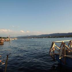 經過三座教堂後慢慢往南走就到達蘇黎世湖。雖然蘇黎世湖讓我有點失望,還是說是我對蘇黎世湖的期待太高了?以為是看起來很寧靜漂亮的湖,結果居然湖邊的水上活動船隻超多,整個 view 看起來很雜。