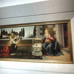 (P8) 達文西《天使報喜》,畫面描述天使長加百列來告知童女瑪莉亞,她已獲選受胎,生子耶穌,即主所預言的救世主。