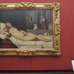 (P7) 提香《烏爾比諾的維納斯》據說是提香在後面畫一塊布遮掩後方,右邊又畫出後方的模樣,滿足人們的偷窺慾。