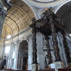 從西斯汀禮拜堂出去就通到##聖彼得大教堂 (Pic 7)內部了。真不愧是世界上最大教堂。被他的莊嚴感震懾到了,也看到不少人在裡面做禮拜。不久後便聽到教徒們唱起聖歌。之後準備登教堂頂!登頂票走路 6 歐,搭電梯 8 歐。來到梵諦岡最重要的行程就是要登頂啦!
