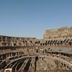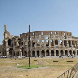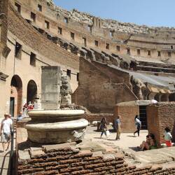 ##羅馬競技場。古羅馬時期最大的圓形角鬥場。一樓主要是參觀遺址整體,二樓有一些一古物可以參觀,像是石塊或是雕像。當時有看到一幅圖,解釋當時競技場的座位劃分,原來是有分階級的,有錢人坐最前面,越窮就坐得越後面。不得不說在二樓一眼望去真的可以感受一千多年前羅馬人的娛樂場所,底下打個你死我活,就是羅馬人的娛樂。