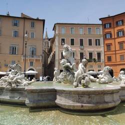 ##納沃納廣場,此處原是公元 1 世紀古羅馬圖密善競技場,15 世紀末闢為市場。廣場中間是四河噴泉,代表文藝復興時代地理學者心目中四大洲的四條大河:非洲的尼羅河,亞洲的恆河,歐洲的多瑙河,和美洲的拉普拉塔河。